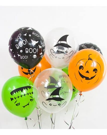Одним из основных элементов декора на Хэллоуин являются шары в виде нарисованных на них ужасающих лиц, черепов, пауков и других монстров. Также популярны шары с изображением призраков, вампиров, зомби и других существ, связанных с мистикой и ужасами.
